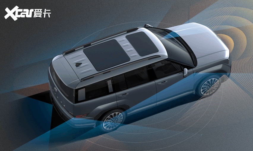 车侧轮廓方正,平直的车顶线条最大限度地保障了车内空间,C柱位置的“攀岩把手”设计不仅增添了户外风格,也具备实用的承重功能。从侧面看上去,这款车与路虎的同级别车型有几分相似。