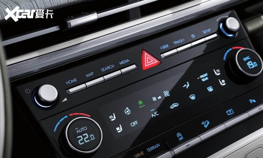 进入车辆内饰,2026款胜达的座舱设计在保留整体风格的同时,通过配置升级提升了科技感与豪华氛围。双12.3英寸屏幕构成车内的信息与娱乐中枢。中控区域采用触控式空调面板,换挡机构则为节约空间的旋转式电子怀挡。内饰提供淡雾白、旷野棕及曜石黑等多种配色方案,高配车型更可免费升级包裹性更佳、质感细腻的Nappa真皮座椅。