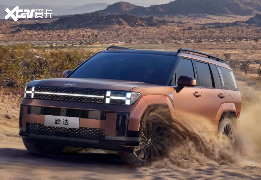 外观方面,2026款胜达延续方盒子造型设计,整车线条平直硬朗,大量运用横向与竖向的几何元素,塑造出与传统流线型SUV截然不同的稳重、力量感视觉形象。前脸部分,贯穿式的格栅与独特的H型日间行车灯带融为一体,配合内部结构精致的像素式LED大灯组,赋予了车辆极高的辨识度与科技感。